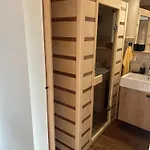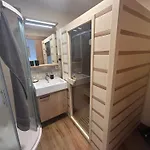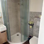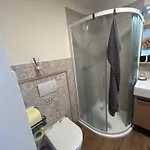 Badrumsfaciliteterna på boendet inkluderar också en separat toalett och en dusch. Det finns också badlakan, handdukar och tofflor för gästernas komfort.